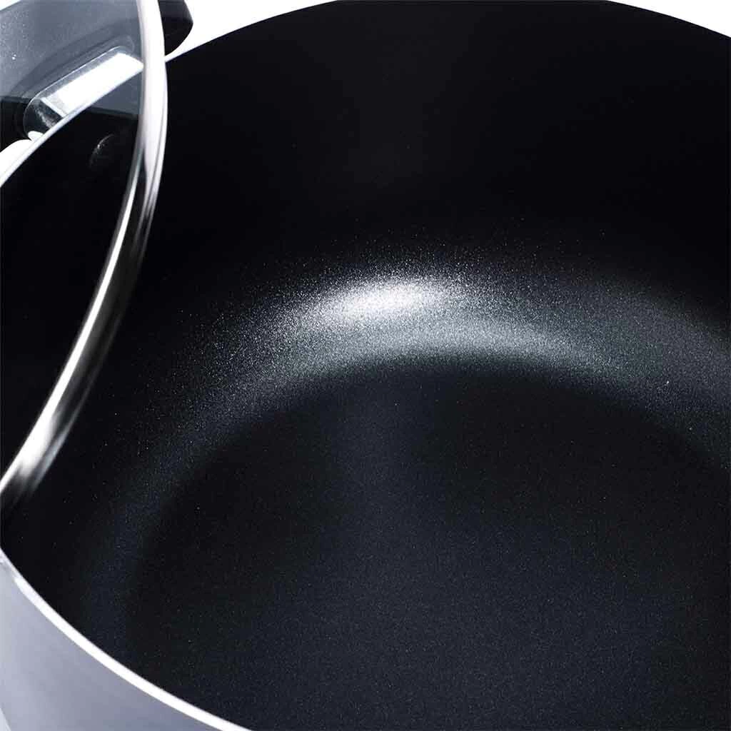- Material: Fabricada en aluminio con doble capa de revestimiento interior antiadherente PTFE, ideal para una cocción uniforme y saludable.