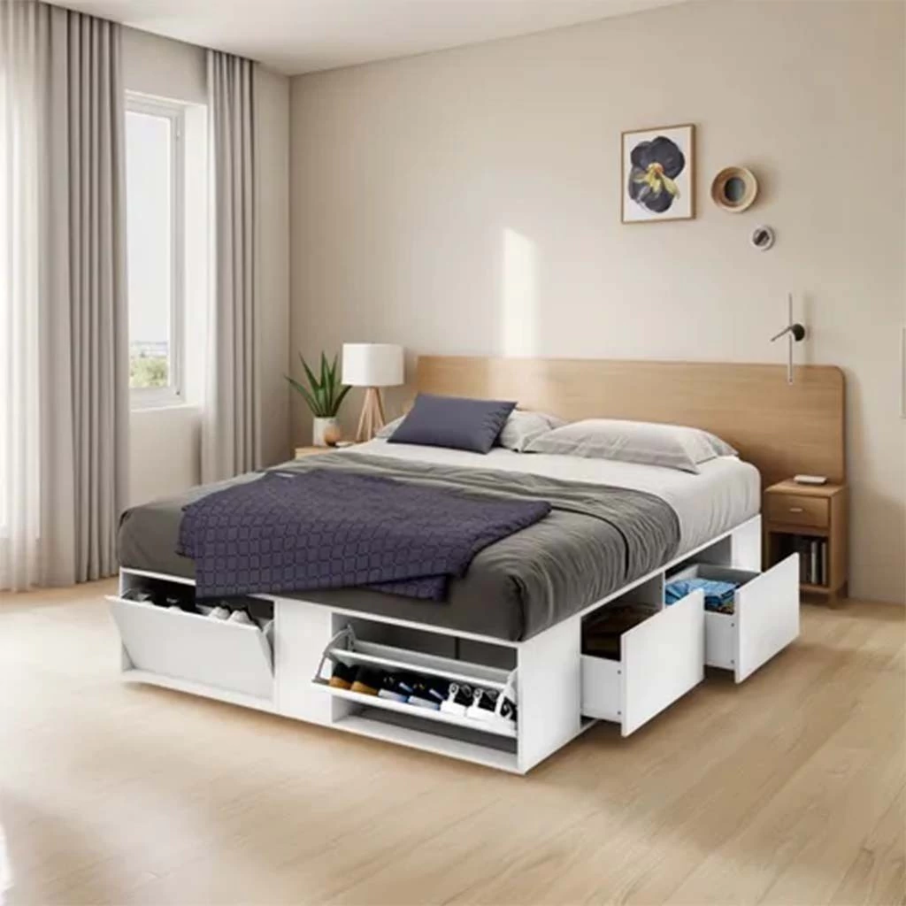 - Amplio almacenamiento, con 4 cajones y 2 zapateros para mantener la habitación organizada.