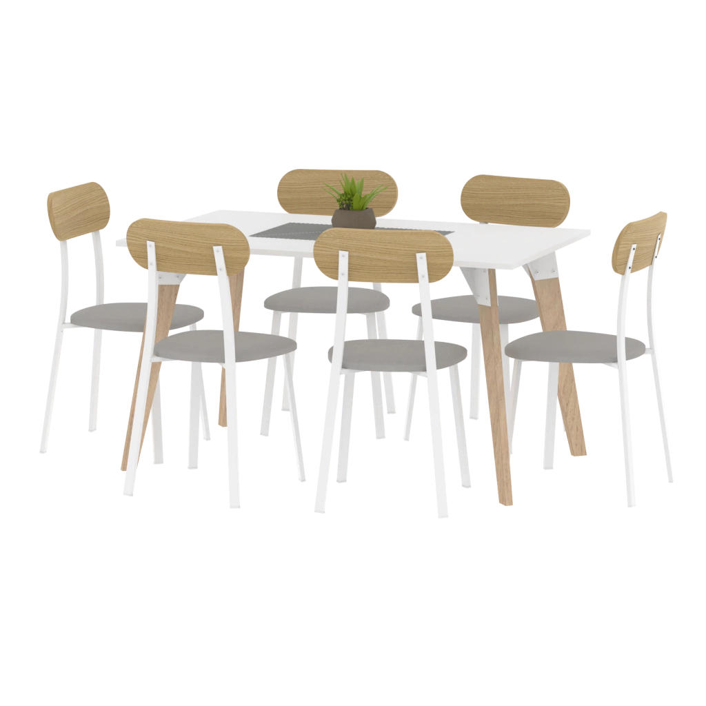 MESA RECTANGULAR BLANCA DE 1,40 CON 6 SILLAS DE CAÑO