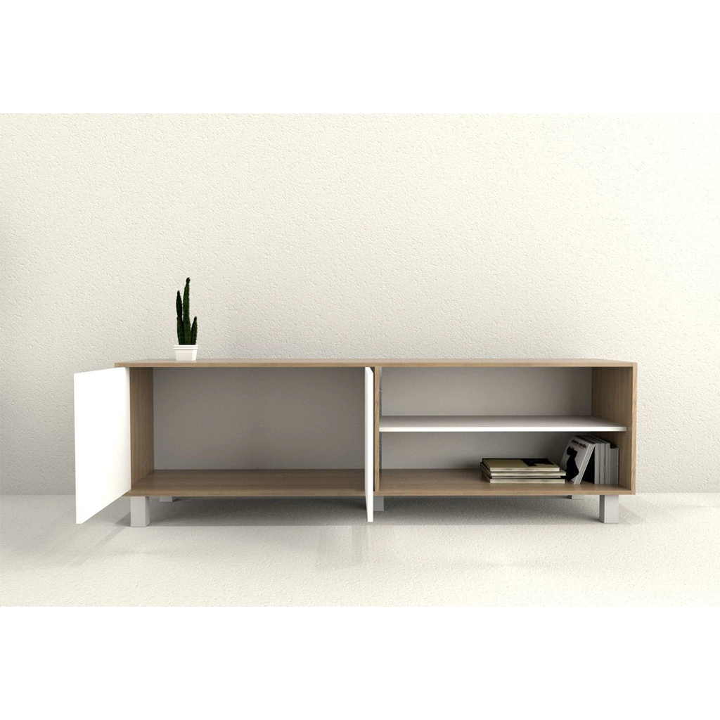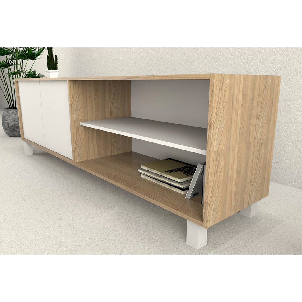 Moderniza tu hogar con nuestro sofisticado rack de TV nórdico. Cuenta con 2 puertas con sistema push y bisagras metálicas para mayor comodidad y durabilidad. Además, incluye un amplio estante para organizar tus dispositivos y accesorios audiovisuales. ¡Disfruta de un espacio de entretenimiento elegante y funcional!