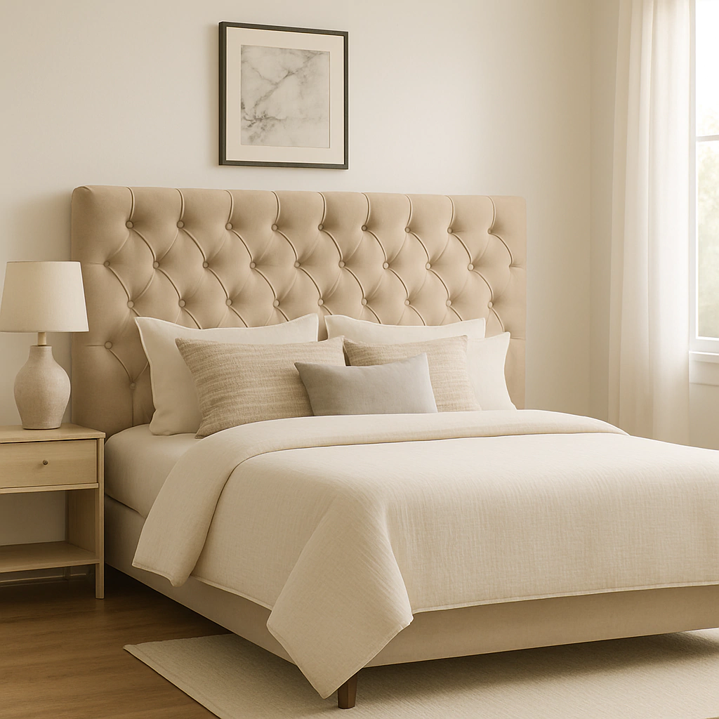 RESPALDO CAPITONE DE PANA BEIGE DE 2 PLAZAS