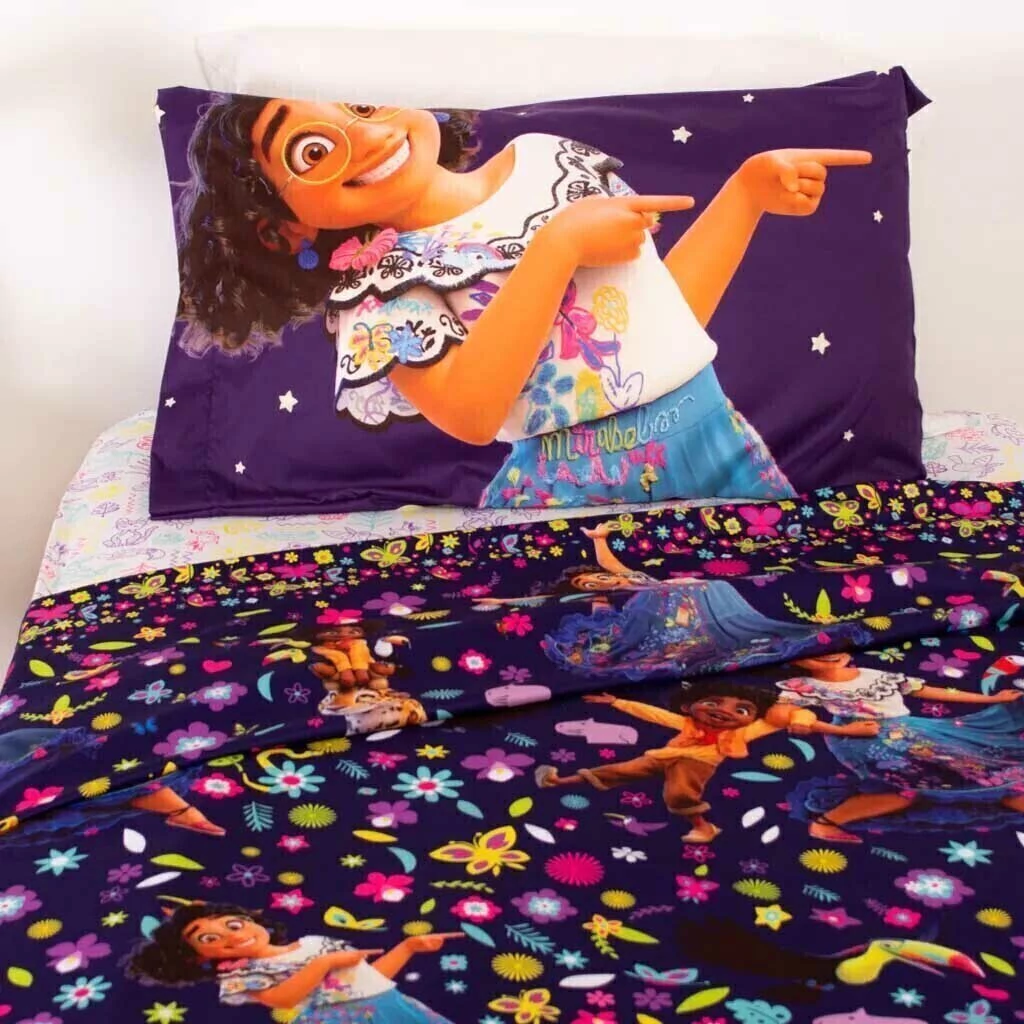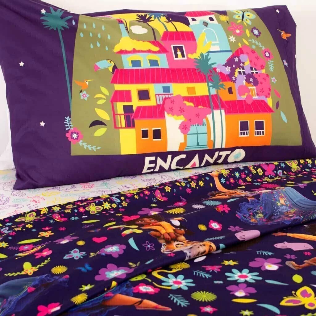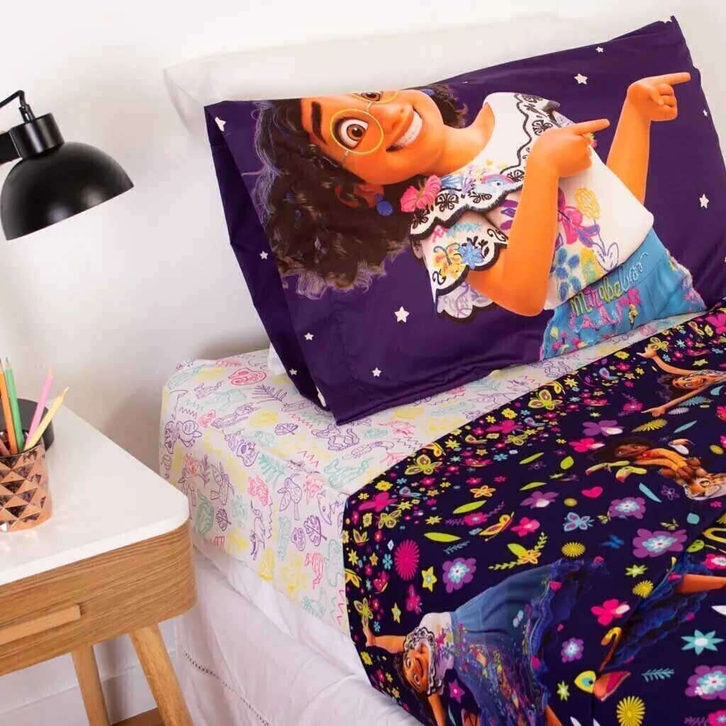 - Cada pieza del juego de sábanas presenta un diseño único y divertido con Maribel, el personaje favorito de la película Encanto, añadiendo un toque especial a la habitación.