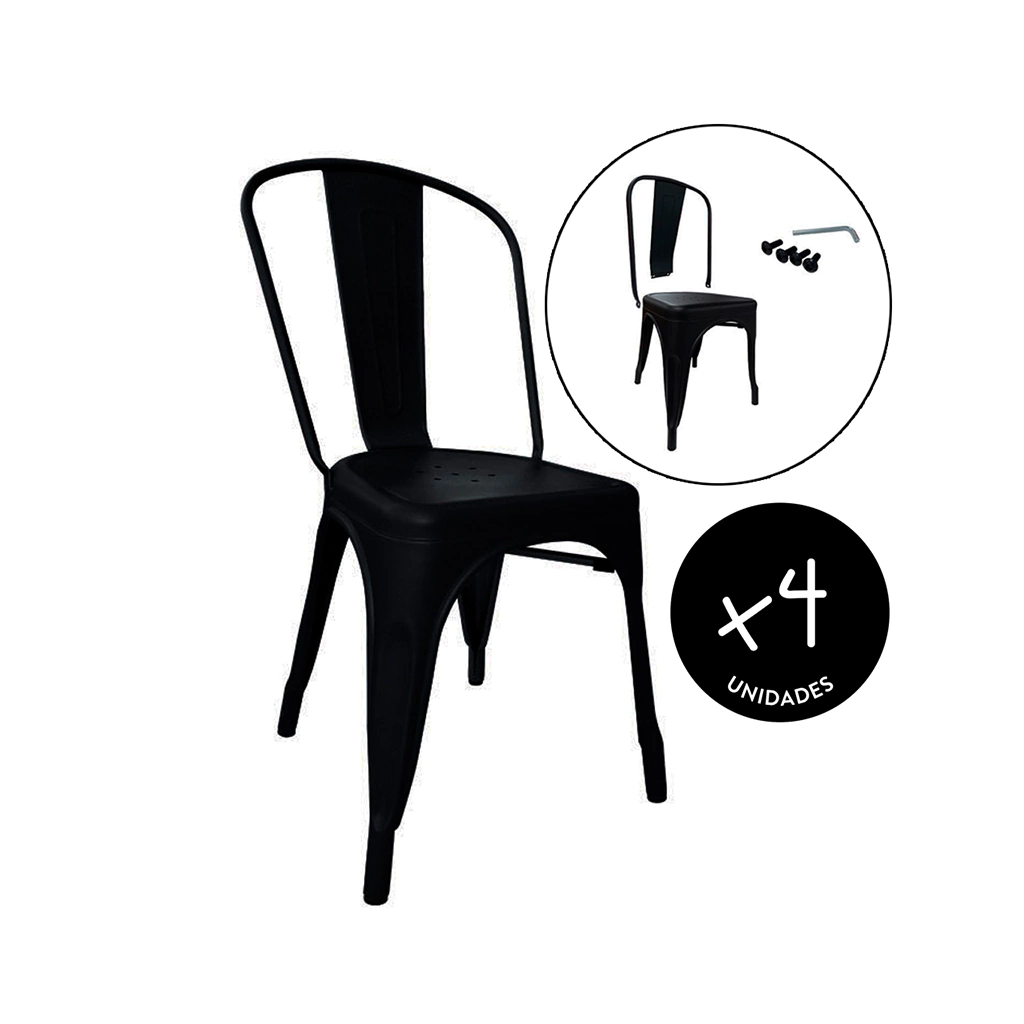 SILLAS TOLIX NEGRAS X4 APILABLES PARA QUINCHO