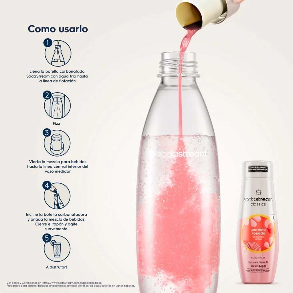 Saborizá tu soda con nuestro sabor Pomelo 0% azúcar y experimentá crear tus bebidas favoritas en segundos. Con SodaStream podés hacer soda y además divertirte sumándole sabor! Simplemente tenés que gasificar el agua, agregar una medida del sabor, mezclar y disfrutar.