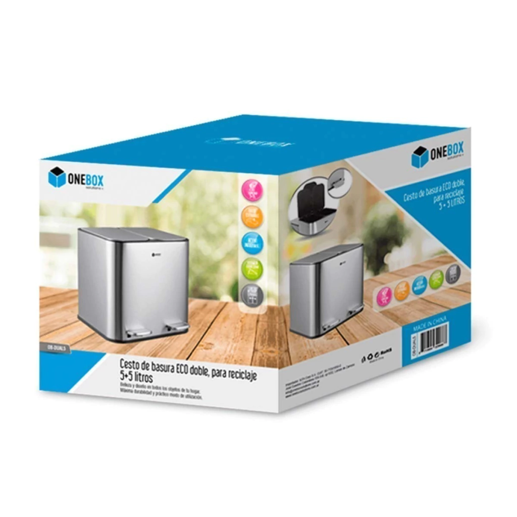 - Capacidad: 5 + 5 L con balde extraíble y sistema de cierre suave.