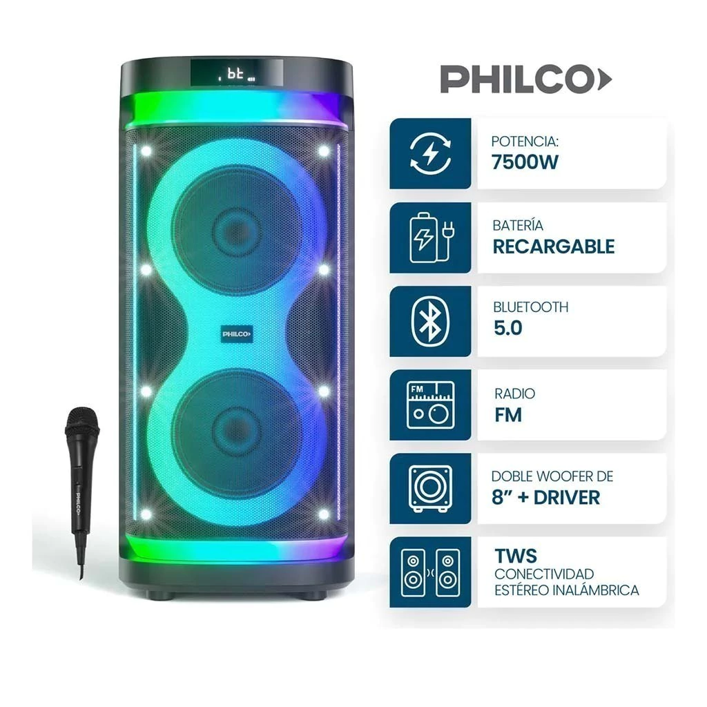 TORRE DE SONIDO PHILCO CON LUCES Y MICROFONO 7500W