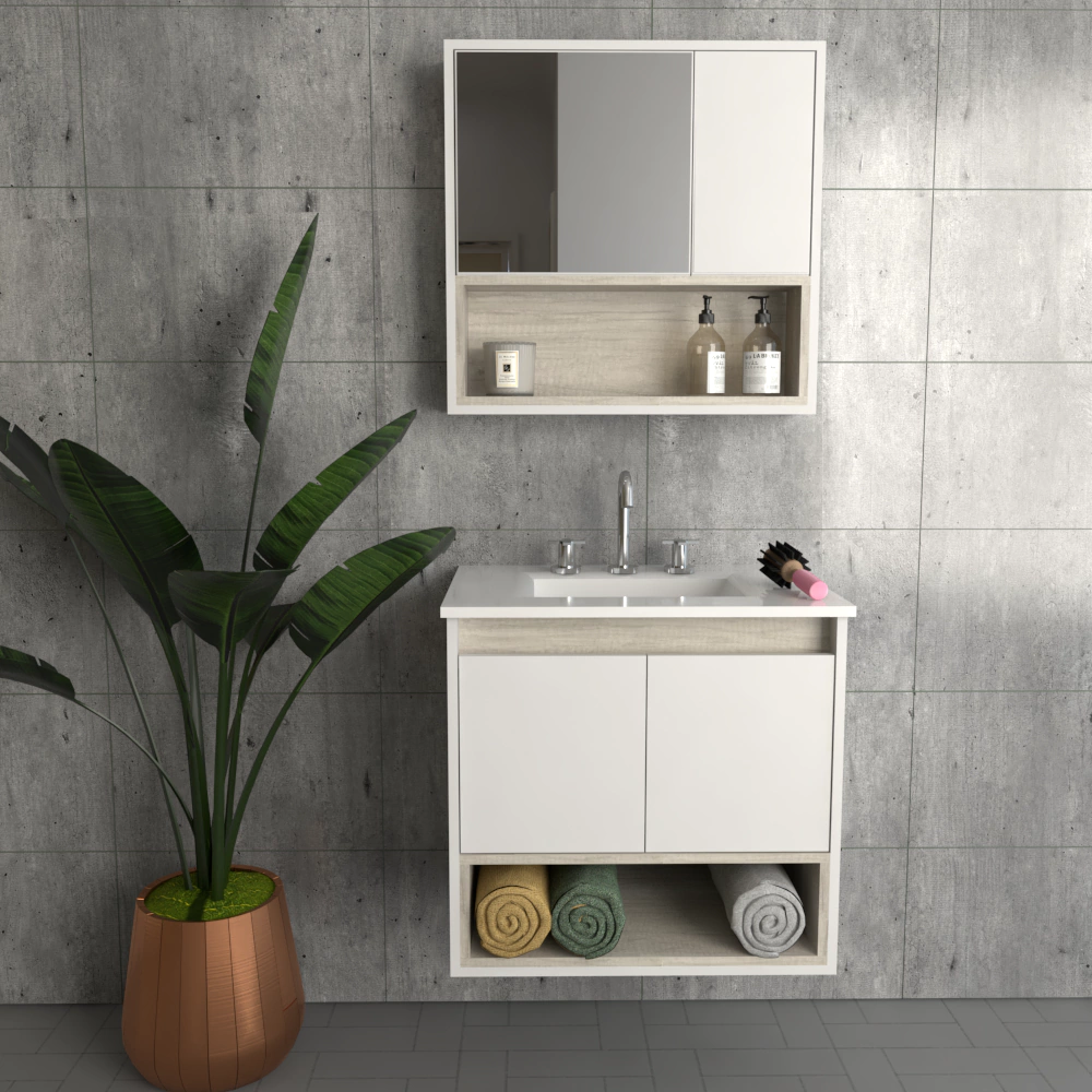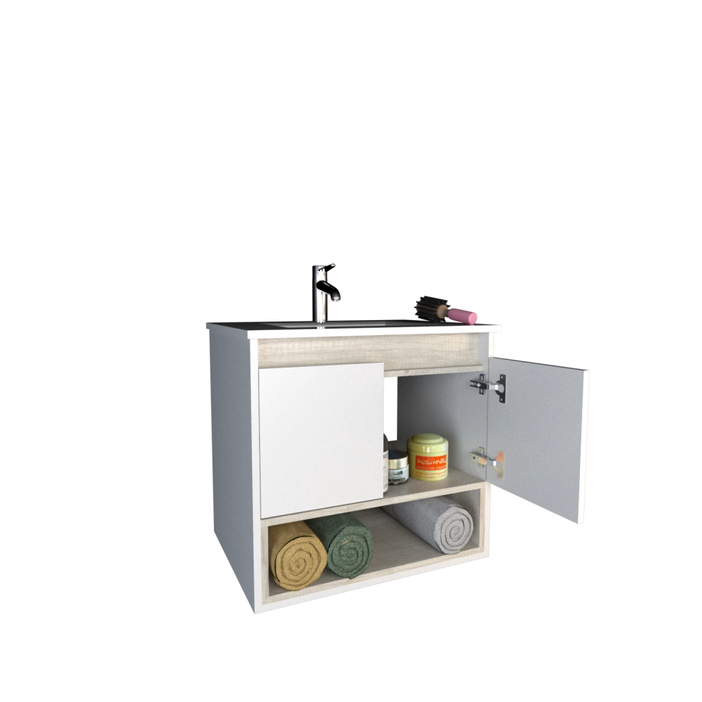 VANITORY PARA BAÑO COLGANTE CON BACHA 60 CM DE 2 PUERTAS